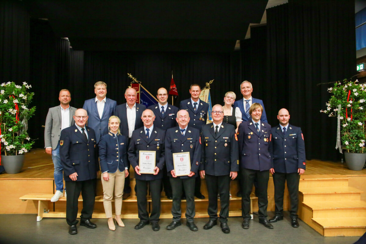 Ehrennadeln für verdiente Feuerwehrler und Beförderung zum Hauptbrandmeister