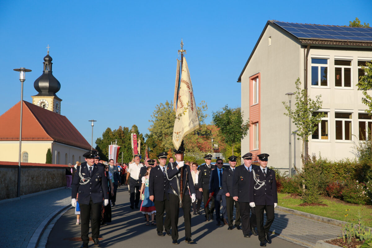 Der Abend begann mit einem kleinen Kirchenzug gemeinsam mit den Partnerfeuerwehren sowie zahlreichen Ehrengästen. Den ökumenischen Gottesdienst zelebrierten der katholische Pfarrer Wolfgang Bauer und der evangelische Pfarrer Bernd Schindler. Im Anschluss segneten sie die restaurierte Fahne, bevor ein kleiner Festzug durch die Straßen von Haselmühl führte.
