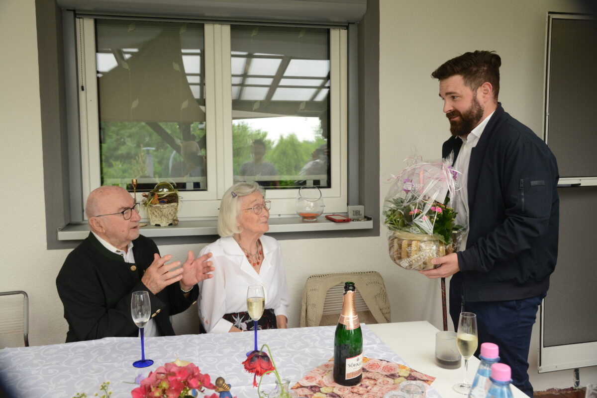 Am Mittwochvormittag, umgeben von ihren engsten Familienangehörigen, stießen Hans und Gertraud Eismann auf viele weitere glückliche und vor allem gesunde Jahre an. Der Bürgermeister von Neustadt, Sebastian Giering, übermittelte persönlich seine Glückwünsche sowie die der Stadt mit den herzlichen Worten: “Am Mittwochvormittag stießen Hans und Gertraud Eismann mit ihren anwesenden engsten Familienangehörigen auf noch viele glückliche und vor allem gesunde Jahre an.”