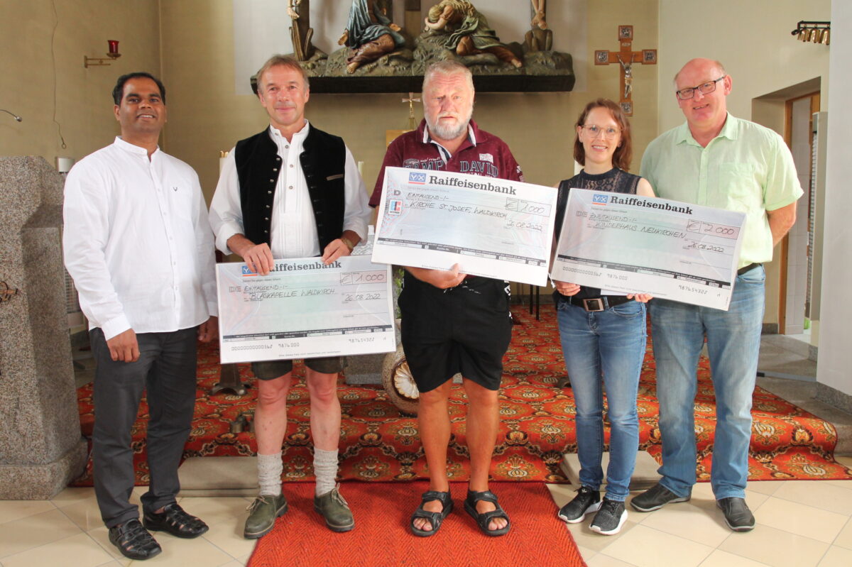 Als einen der letzten Beschlüsse nannte er die Entscheidung, was mit dem vorhandenen Geld passieren soll. „Da waren wir uns einig“, sagte Völkl. 1.000 Euro übergab er in der Filialkirche St. Josef an Pfarrer John Subash und Martin Vogl vom Kirchenausschuss Waldkirch.
