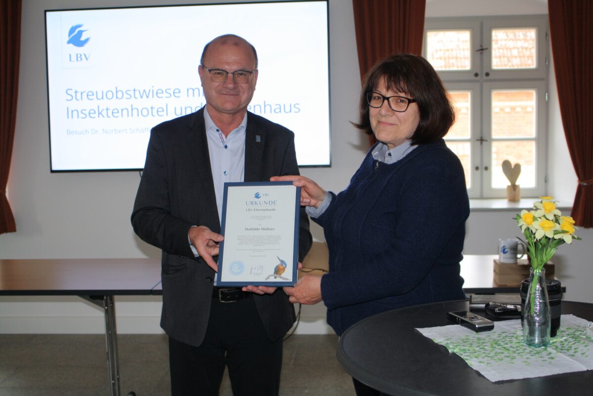 Dem LBV sei sie seit 35 Jahren als Mitglied verbunden und habe sich in fachkundiger und verdienstvoller Weise für den Erhalt des besonderen Charakters der Natur „in unserer Oberpfälzer Heimat“ und die vom Landesbund betreuten „Flächen und Schutzgebiete“ eingesetzt.