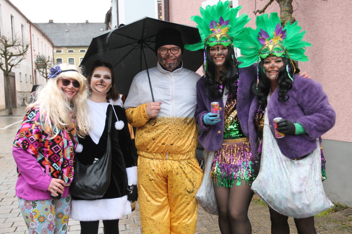“Drei Tog gemma nimma ham” war angesagt. Ob das reicht? Immerhin sind es bis zum Faschingsdienstag sechs Tage. Auf jeden Fall wurde erst einmal kräftig gesungen, geschunkelt und auch das Tanzbein geschwungen. Prächtige Laune und tolle Stimmung dominierten auf der ganzen Linie. “Rucki-zucki” machte sich das “Waidhauser Narrenvolk” dann weiter zu den Banken, Geschäften und vor allem Gasthäusern. Schließlich musste das Geld ja unter die Leute.