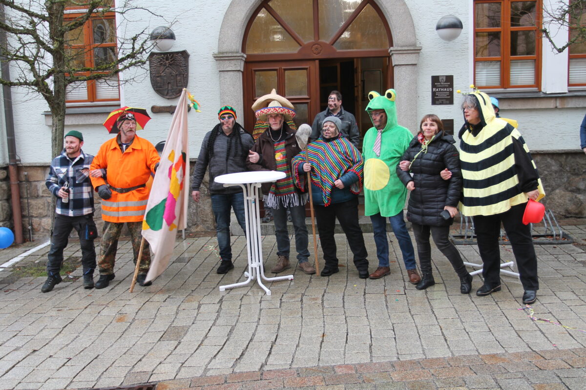 Kämmerer Karl Schmid winkte da zwar am Eingang des Rathauses vehement ab, aber was sollte er bei dem “Überfall” machen. Der Hüter der kommunalen Finanzen hatte keine Chance und musste sich der Entscheidung von Bürgermeister Markus Bauriedl beugen, ob er wollte oder nicht. Dietls Aufruf, die Narren nicht länger warten zu lassen, zeigte Wirkung.