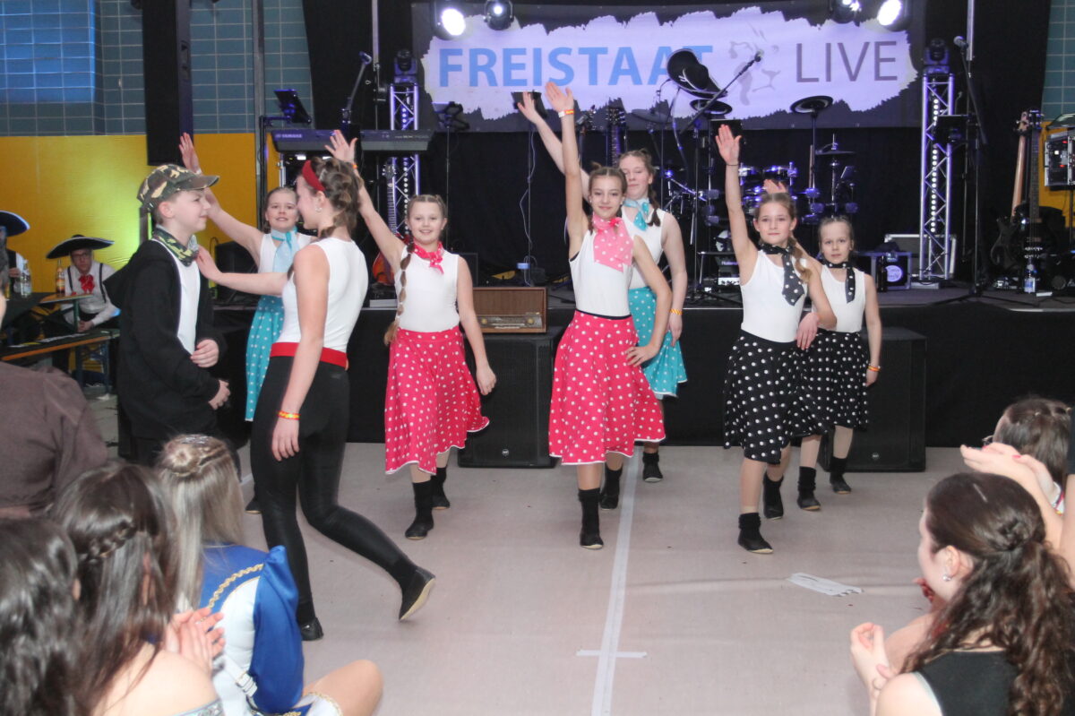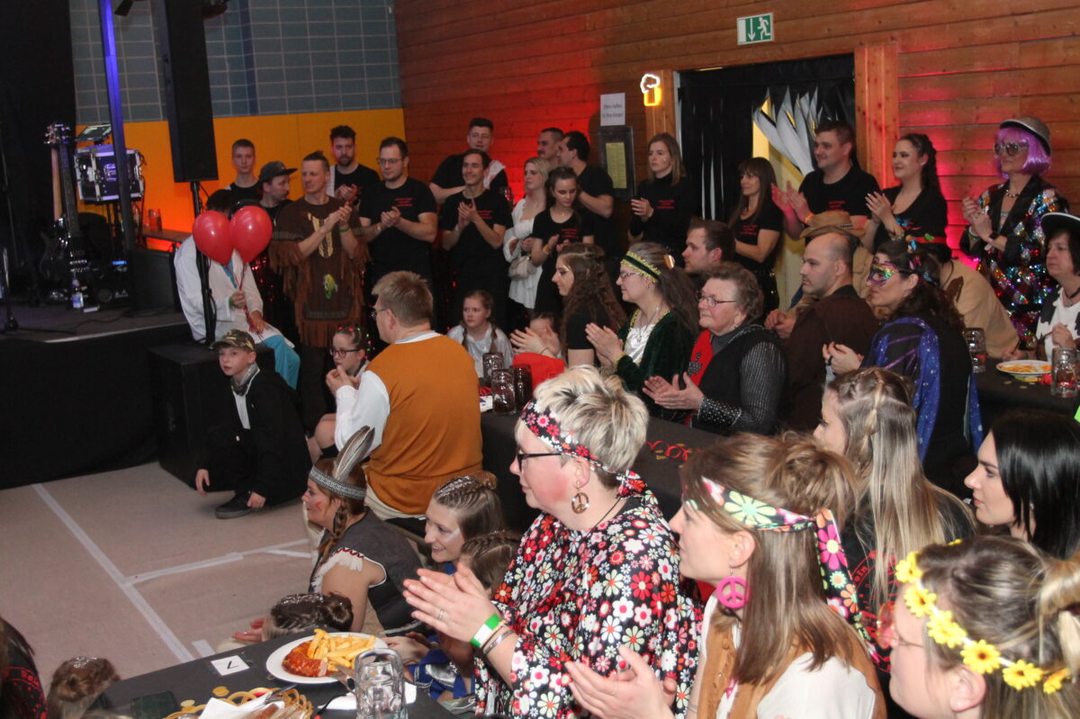 “Freistaat live” war angesagt, und das im wahrsten Sinne des Wortes. “Mia rock’n Bayern”, ist in der Homepage der Band zu lesen. In der Turnhalle hieß es: “Mia rock’n Waidhaus.” Natürlich spielten die Musiker beim großen Faschingsball nicht nur Rock-Klassiker, sondern auch Schlager, Oldies und Evergreens aus den 1960er- oder 1970er Jahren. Nicht fehlen durften auch Stimmungshits wie Andreas Gabaliers “I sing a Liad für di”, Nenas “99 Luftballons” oder die Aufforderung “Wir fahren mit dem Bob”. Kein Wunder, dass die Tanzfläche stets gut gefüllt war und sich die Gäste gerne auch zu einer Polonaise durch den Saal animieren ließen.