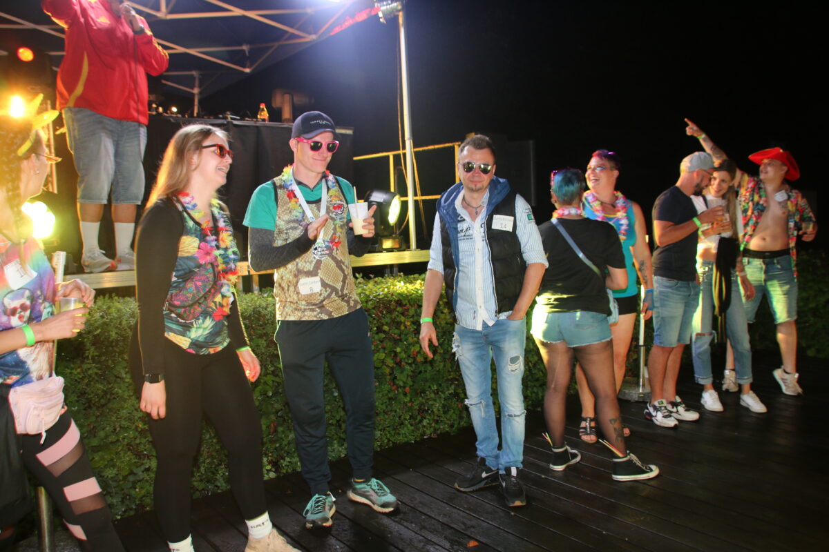 Trotzdem kamen einige hundert Gäste und wollten feiern. Unter dem Motto “Waldbad goes Malle” waren Becken und Umfeld bunt geschmückt. DJ Cashi war der Hauptakt und war extra vom Bierkönig in die Oberpfalz gekommen. Die Erfahrung war ihm anzumerken: Mit einem bunten Mix aus Ballermann-Hits und lockeren Kommentaren schaffte er es, die Tanzfläche gefüllt und in Bewegung zu halten.