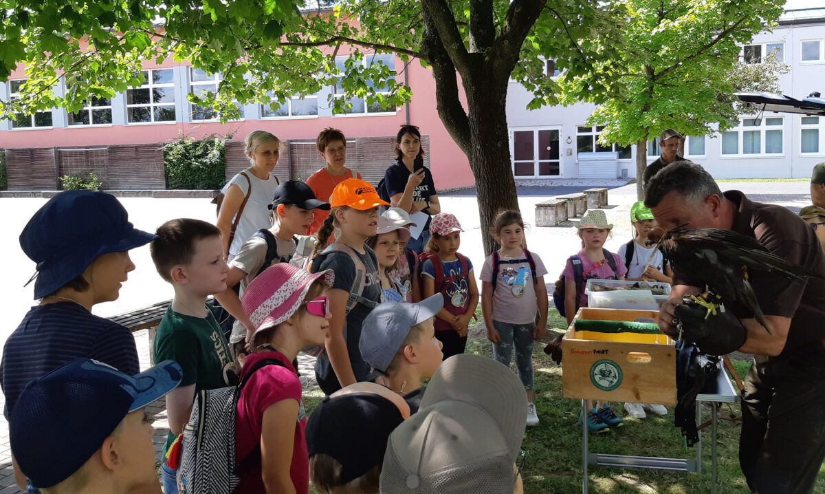 Gruppe 1 wurde von den Markträten Nicole Hoch und Josef Kleber begleitet, während Gruppe 2 von Markträtin Maria Reichenberger-Hösl und Martina Hoch geführt wurde. Der Startschuss fiel im Pausenhof der Schule in Waidhaus, wo Falkner Eckhard Mickisch aus Wunsiedel die Kinder mit seinem majestätischen Falken Katrin überraschte. Mickisch vermittelte den jungen Teilnehmern faszinierende Einblicke in die Welt der Falknerei und erklärte Wissenswertes über Greifvögel. Von dort aus machten sich die beiden Gruppen getrennt auf den Weg in Richtung Staatsgut.