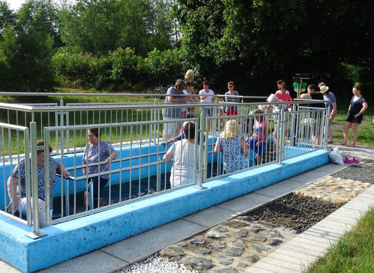 Die Teilnehmer ließen sich von der Kneippexpertin Barbara Winkler aus Teunz über das richtige Wassertreten einführen.