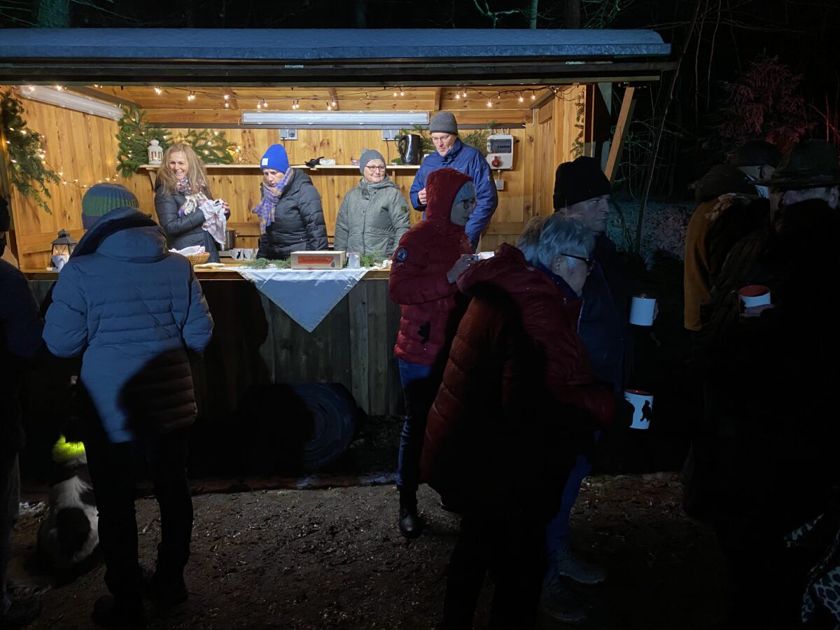 Selbst als kräftiges Schneegestöber einsetzte und einen Winterwald zauberte, verließen die Besucher die Feierstunde nicht. Tapfer spielte auch „Bayrisch Blech“ weiter und „untermalte“ die weiße Pracht mit winterlich weihnachtlichen Klängen. Gefragt waren zum Schluss Glühwein, Lebkuchen und Plätzchen, die das Team des OWV gegen eine freiwillige Spende anboten.