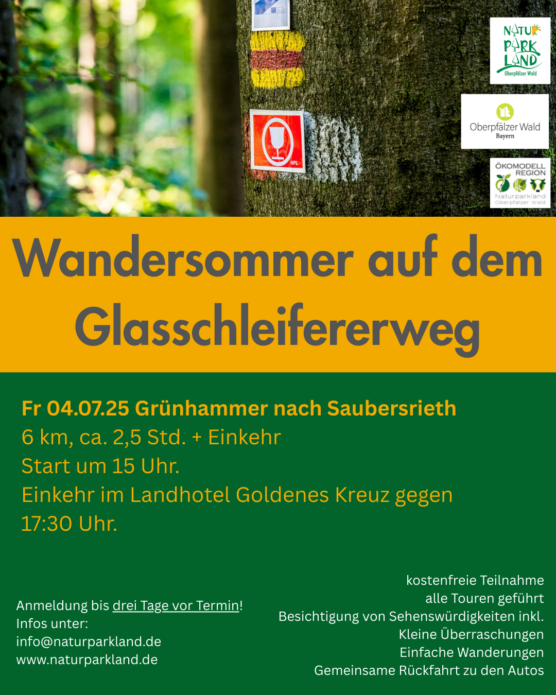 - Freitag, 04.07.2025: Grünhammer nach Saubersrieth, 6 km