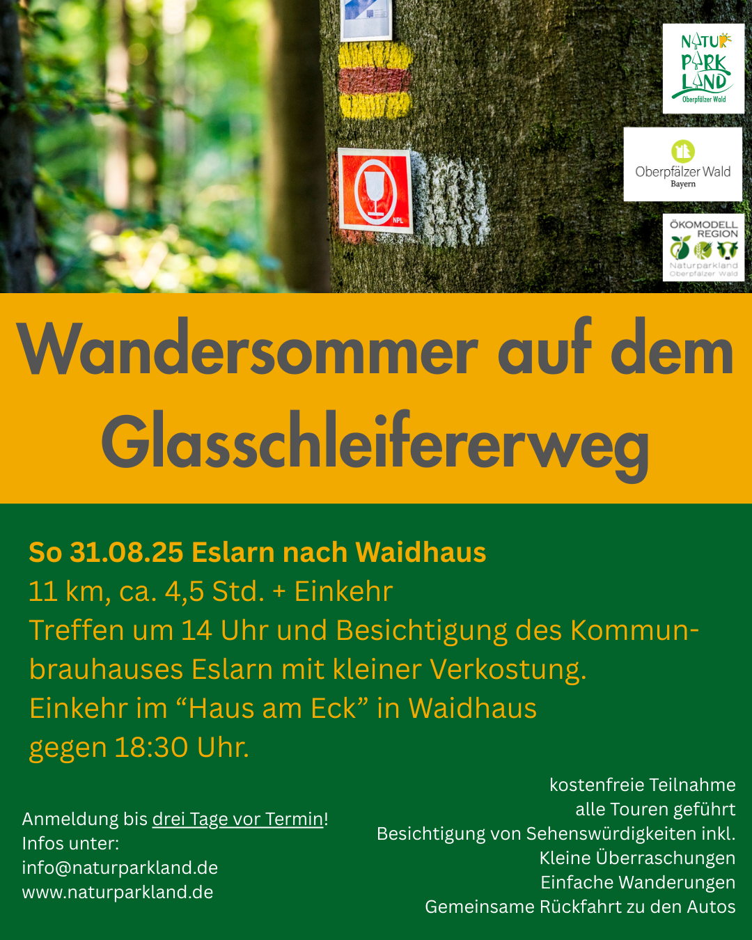 - Sonntag, 31.08.2025: Eslarn nach Waidhaus, 11 km