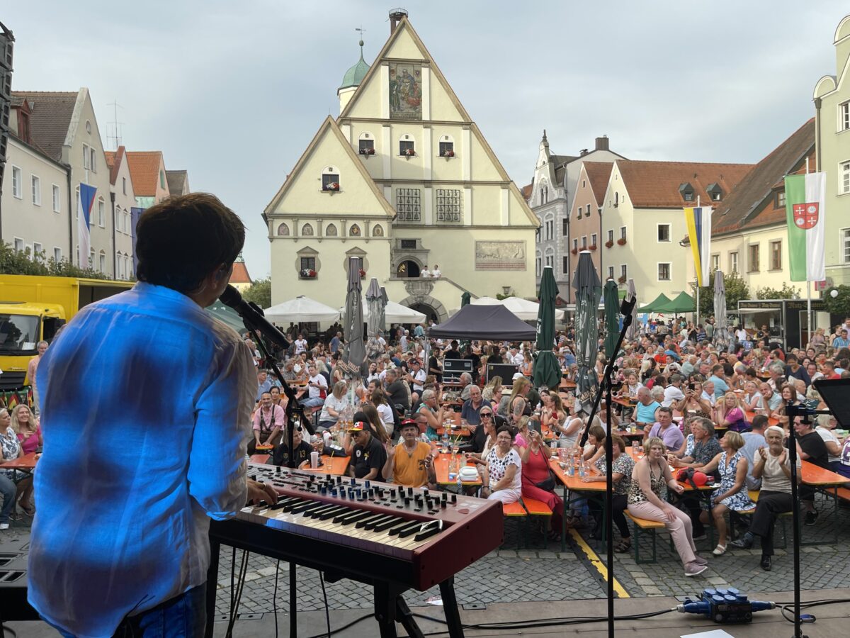 Und noch eine ist am Samstagabend sehr zufrieden. Gertrud Wittmann von der Stadt Weiden, Organisatorin der größten Fete Weidens: “Läuft alles gut.” Den Sorgen um Gambrinus, einzige Brauerei Weidens, konnte etwas gegengesteuert werden. Der Burschenverein Floß ist am Ausschank eingesprungen und macht das natürlich perfekt. Das Bier schmeckt. Chefin Stefanie Rohrwild steht selbst mit hinter der Theke.