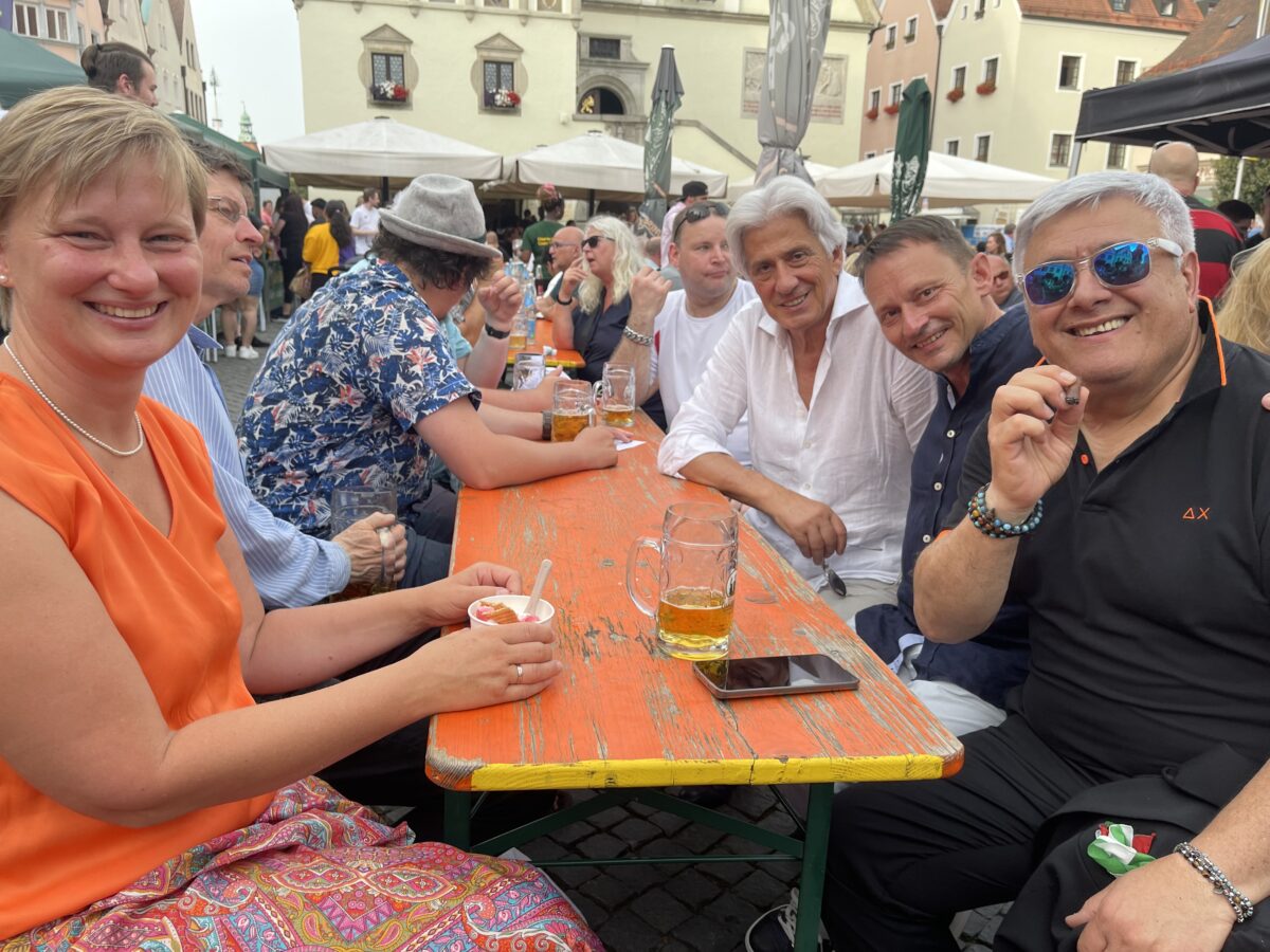 Das Weidener Bürgerfest wäre nicht das Weidener Bürgerfest, wenn nicht jede Nationalität prompt parat stünde. Christina Winkler ist aus der Partnerstadt Weiden am See in Österreich. Sie gratuliert dem Weidener Schweizer. Seit 42 Jahren besucht die Österreicherin das Weidener Bürgerfest. Und toppt damit glatt Hennes Stolley. Er war Marinesoldat auf dem Mindenjagdboot Weiden. Das sticht schon länger nicht zur See. Stolley besucht immer noch die Namensgeber-Stadt. Er ist dabei nicht allein. “Bierfilzer” nennt sich die Truppe, die Weiden die Treue hält.