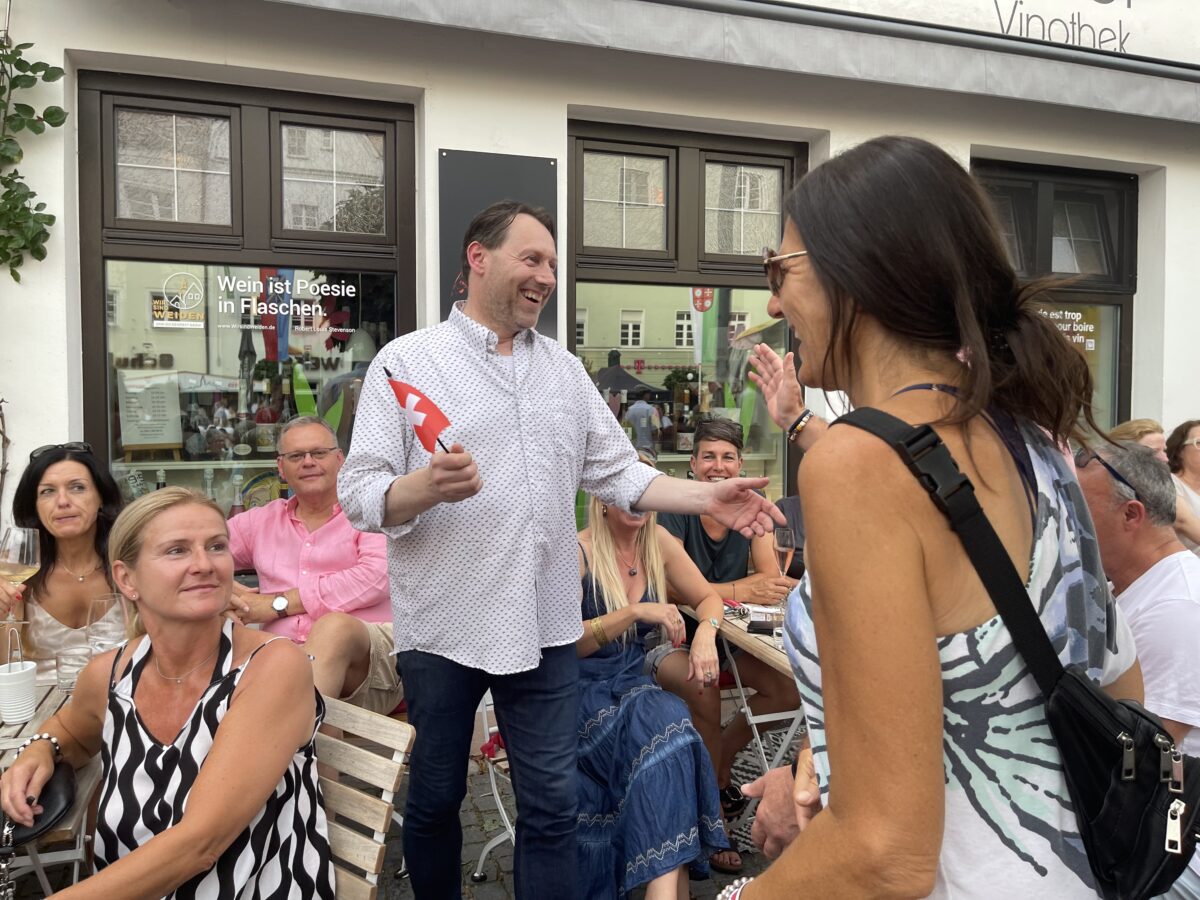 Einer hat ganz wunderbare Laune: Tony Flück vom “Hänsel und Gretel” am Oberen Markt gibt seinen Gästen einen Wildkirsch Chili aus. Die Schweiz gewinnt im ersten Spiel des Abends gegen Italien. Flück hält jetzt alles für möglich, in jedem Fall das Halbfinale gegen Österreich. Dann allerdings ist womöglich Schluss für die Eidgenossen: “Österreich ist in dieser Europameisterschaft für jede Überraschung gut.”