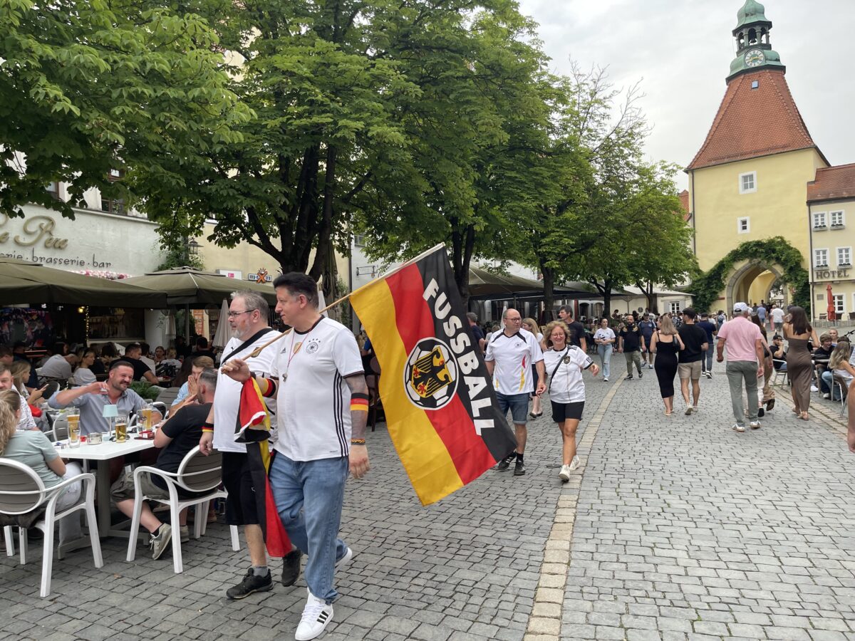Gegen 20 Uhr füllt sich die Innenstadt zunehmend mit deutschen Trikots. Um 21 Uhr ist Anpfiff für das Achtelfinale Deutschland gegen Dänemark. Der Schweizer tippt 3:0. Sein Wort in Gottes Ohr.