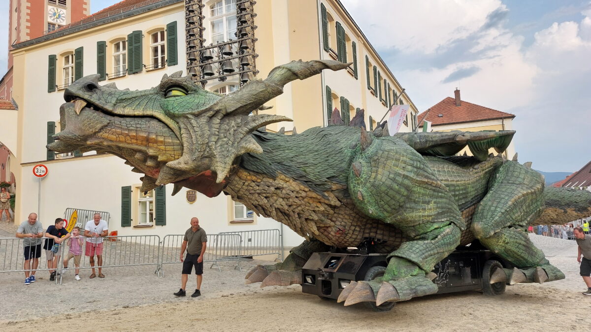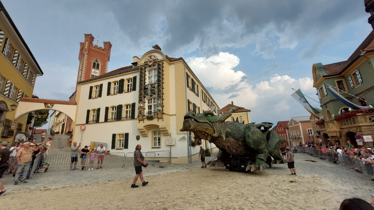 Das Festspiel ist eingebettet in ein ganzes Universum rund um den Drachen. Straßenschilder, Brunnen, selbst das Freibad tragen seinen Namen. Und wer durch die Gassen schlendert, spürt: Hier ist der Drache weit mehr als eine Figur, er ist Herzstück der Stadt, wo man weiß, wie man Stadtmarketing macht.