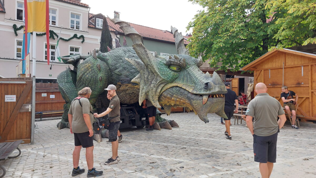Doch der Drache ist längst nicht mehr nur eine Sagengestalt. Seit 2010 besitzt Furth im Wald den größten Schreitroboter der Welt. Fünf Meter hoch, über 15 Meter lang und fähig, meterweite Feuerstöße aus seinem Maul zu schleudern. Hollywood-Spezialisten und Roboterbauer haben ihn erschaffen, doch in der Drachenhöhle auf dem Festplatz ist er zum lebendigen Mythos geworden. Von April bis Oktober können Besucher dort in seine Welt eintauchen und staunen über Mimik, Bewegungen und Technik. An den Festspieltagen selbst begleiten hunderte Schaulustige das schuppige Tier hoch zum Marktplatz und warten dann sehnsüchtig, bis der Drache wieder zum Leben erwacht. Ein Spektakel, das Geschichte, Fantasie und modernste Technik verbindet und das jedes Jahr Tausende in seinen Bann zieht.