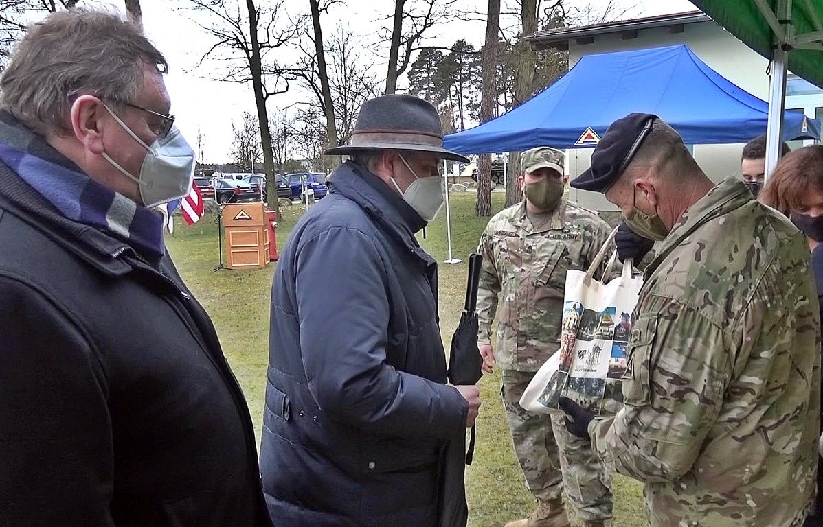 Vertreter der US-Armee und Bundeswehr sowie Bürgermeister Edgar Knobloch (Grafenwöhr) und Hans-Martin Schertl (Vilseck) haben Command Sergeant Major Franklin Velez mit Geschenken verabschiedet. Sie setzen auch mit dem neuen Command Sergeant Major auf gute Zusammenarbeit.