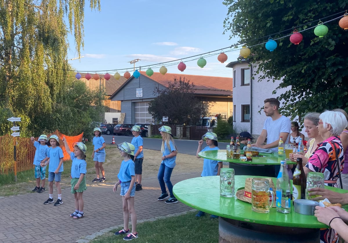 Vor den Wasserspielen hatte die Kinderfeuerwehr einen Auftritt, den die jüngsten Mitglieder der Wehr mit ihren Betreuerinnen Michaela Hösl und Vanessa Bäumler einstudiert hatten. Die Zuschauer zollten großes Lob.