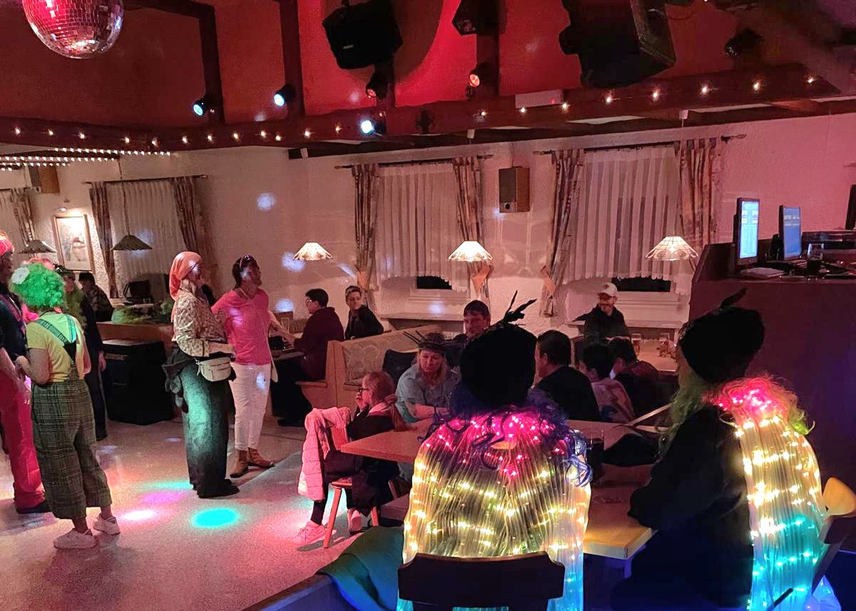 Das Rezept zum Gelingen war ein Gastwirt mit einem flotten Team und zwei DJs. Am „Fosend-Irta“ sorgten die DJs Jürgen und Wolfgang abwechselnd mit Hits aus den 80er-Jahren für ein musikalisches Déjà-vu. Für ausgelassene „Sabada“-Stimmung standen vor allem die Klassiker der Saragossa Band auf dem Programm. Die Münchner Partyband, 1977 gegründet, ist seit Jahrzehnten für eingängige Ohrwürmer bekannt. Titel wie „Big Bamboo“, „Zabadak“ und „Agadou“ verwandelten den Weiberfasching in eine Disconacht. „Wie früher“, schwärmten viele Gäste. Hände in der Luft, Refrains aus voller Kehle – spätestens bei den bekannten Faschingsmelodien sang selbst der letzte „Minirockträger“ textsicher mit.