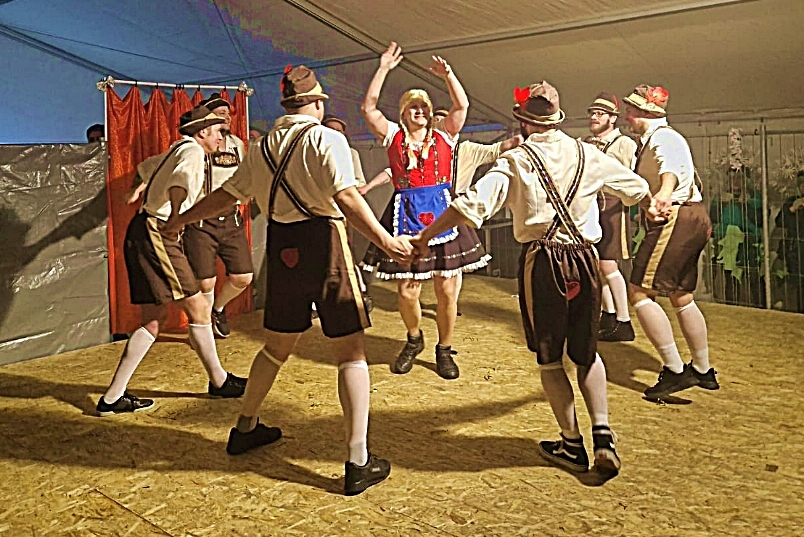 Die Musik- und Lichtshow von DJ Flo sorgte für beste Stimmung im Festzelt, während das Männerballett des TSV Reuth seine erste von mehreren Vorstellungen ausführte. Abwechslungsreiche Performances boten eine bunte und lebendige Atmosphäre.