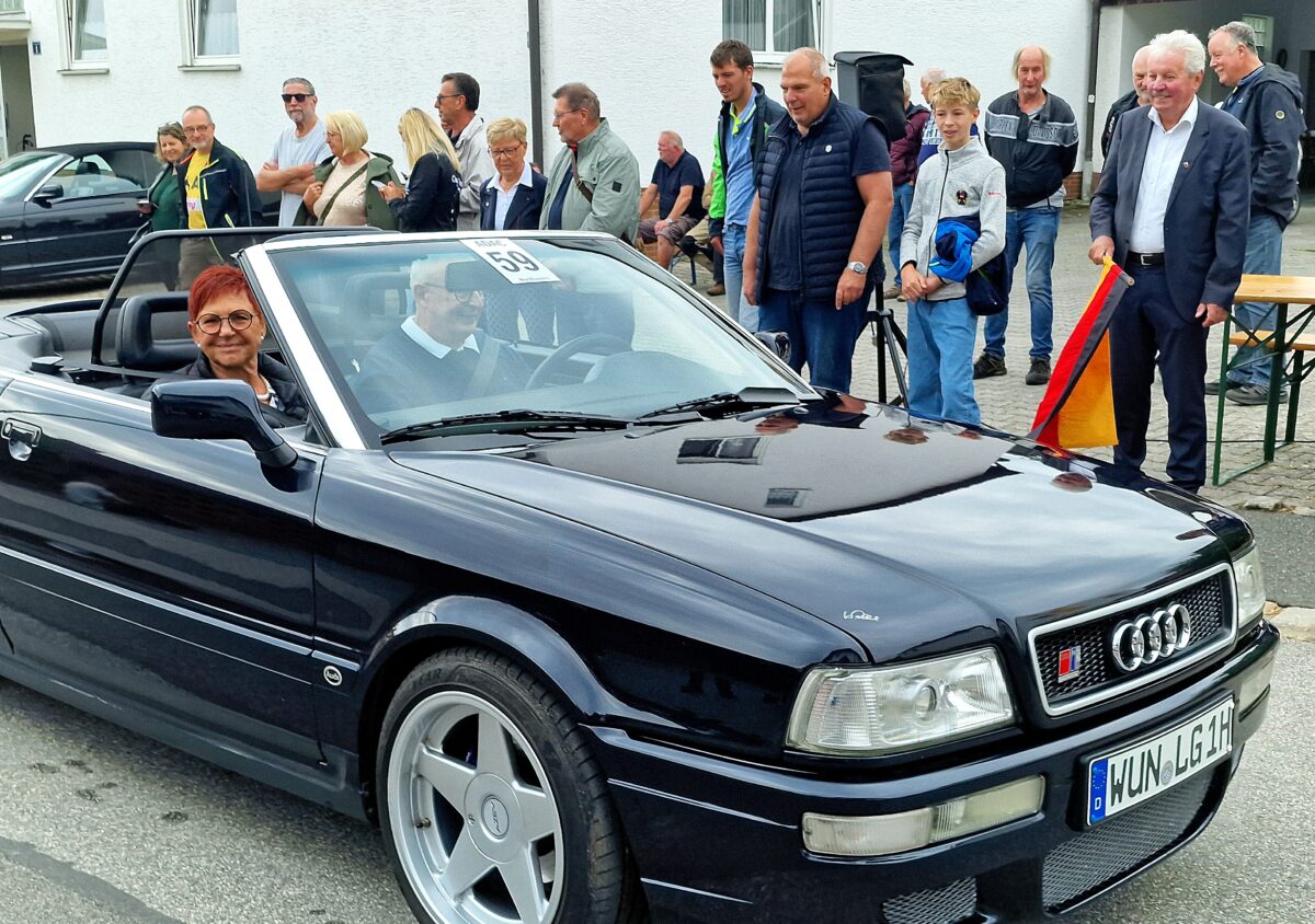 Karlheinz Ach, der AMC-Vorsitzende, bezeichnete das Treffen als „jedes Jahr einen tollen Treff für Autofans“. Nach einem kräftigen Frühstück überreichten er und der Organisator Matthias Kastner die Startunterlagen. Trotz des fehlenden Sonnenscheins war die Stimmung hervorragend. Einige Cabrios und Motorräder mussten das Treffen wetterbedingt absagen, was Ach jedoch verständlich fand. „Aber was da heute aufläuft, ist immer noch großes Kino.“ Oberbürgermeister Jens Meyer, der das Amt des Schirmherrn innehatte, schwang persönlich die Startflagge und gab den Startschuss für die Fahrzeuge, die zu einer Zeitreise aufbrachen.