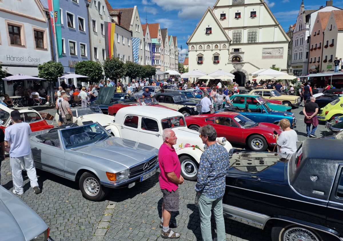 Ein toller Rekord im Jubiläumsjahr: „Erstmals erreichten wir mit 132 Startern einen Rekord über das gewünschte Ziel von 130 hinaus. Ein Highlight zum Runden war nach der Ausfahrt die Aufstellung der ‚Schätzchen‘ vor dem Alten Rathaus, das war ja das zweite Bürgerfest“, freute sich 1. Vorsitzender Karlheinz Ach. Vor dem Ach-Stodl in Frauenricht reihten sich die Oldtimer auf, nachdem sie ab 8.30 Uhr ihre Teilnahme mit Papieren und Fahrzeugdaten bestätigt hatten.