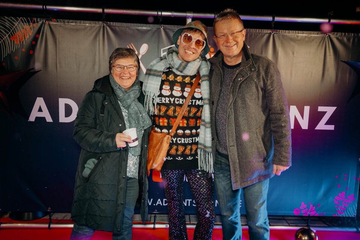 Im Rampenlicht standen nicht nur die aktuellen Protagonisten der Adventsshows, wie die Singer-Songwriterin “Die Nowak”, BR-Brettl-Spitzen Initiator Jürgen Kirner oder Künstler Matze Wolf. Auch vergangene Gäste wie Schauspielerin Anita Eichhorn oder Schafferhof-Legende Reinhard “Kitty” Fütterer gaben sich auf dem Roten Teppich die Ehre.