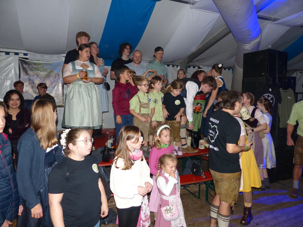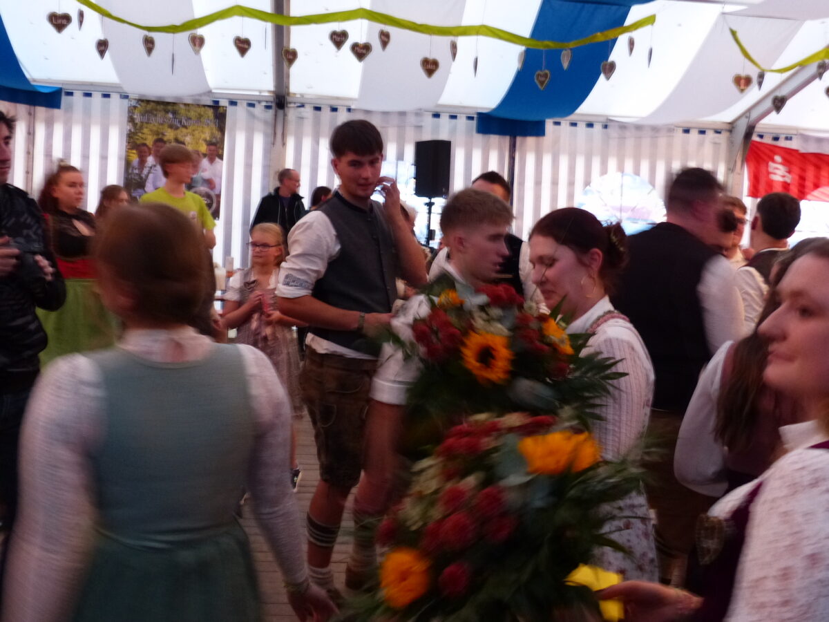 Für alle Besucher, die am Kirchweihsonntag nicht selbst am Herd stehen wollten, wurden verschiedene Mittagsgerichte angeboten. Am Nachmittag füllte sich der Festplatz zusehends, im Festzelt suchte man sich schon einen guten Sitzplatz. Der Kirwabaum und die Tanzfläche in der Zeltmitte nahmen schon eine Menge Platz ein. Der Höhepunkt der Kirwa sind stets die Tanzaufführungen der unterschiedlichen Gruppen. Das Ausstanzen des Kirwabaumes mit der Kür des Oberkirwapaares lässt sich dann an Spannung nicht übertreffen. Von den Tanzlehrerinnen Susi, Babsi und Steffi wurden wieder schöne Formationen einstudiert. Für die Darbietungen gab es viel Applaus.