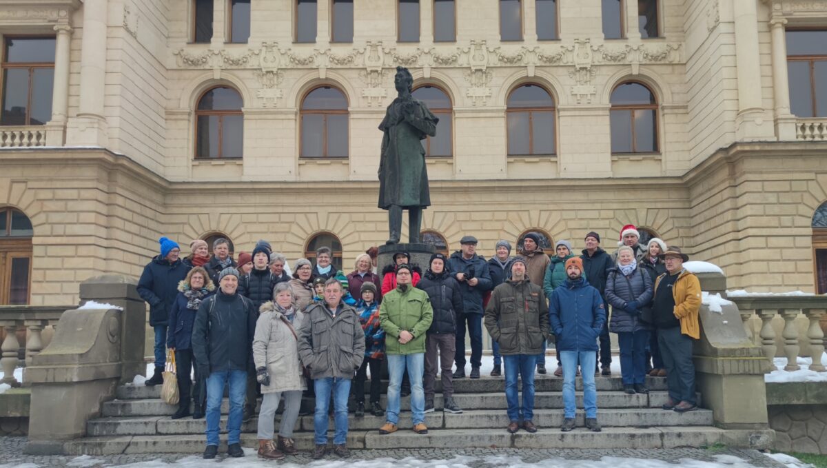 Von dort aus machten sie eine Stadtbesichtigung unter der Führung des Reiseleiters und Tschechien-Experten. Diese ging vorbei am neuen und alten Theater, an der Synagoge, am kleinen Christkindlesmarkt, an der Pestsäule, durch die Altstadt und zur Sankt-Bartholomäus-Kathedrale. Dabei brachte er den Siedlern die örtlichen Sehenswürdigkeiten nahe.