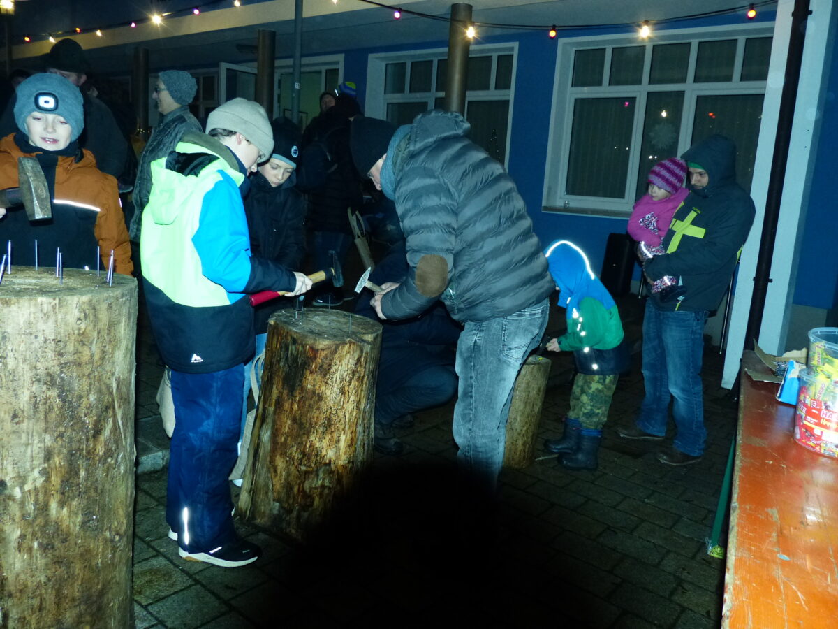 Unerwarteten Besuch bekam man von einem Drehorgelspieler, woher er kam und wohin er ging, keiner weiß es. Vom Nikolaus wusste man da schon mehr. Er hatte für die Kleinen etwas Süßes dabei und machte sie glücklich. Für die Erwachsenen gab natürlich Glühwein in den unterschiedlichsten Arten, Bratwürste, Dotsch und Leckereien. Ob jung oder alt, beim „Nageln“ konnte man seine Künste mit dem Hammer beweisen.