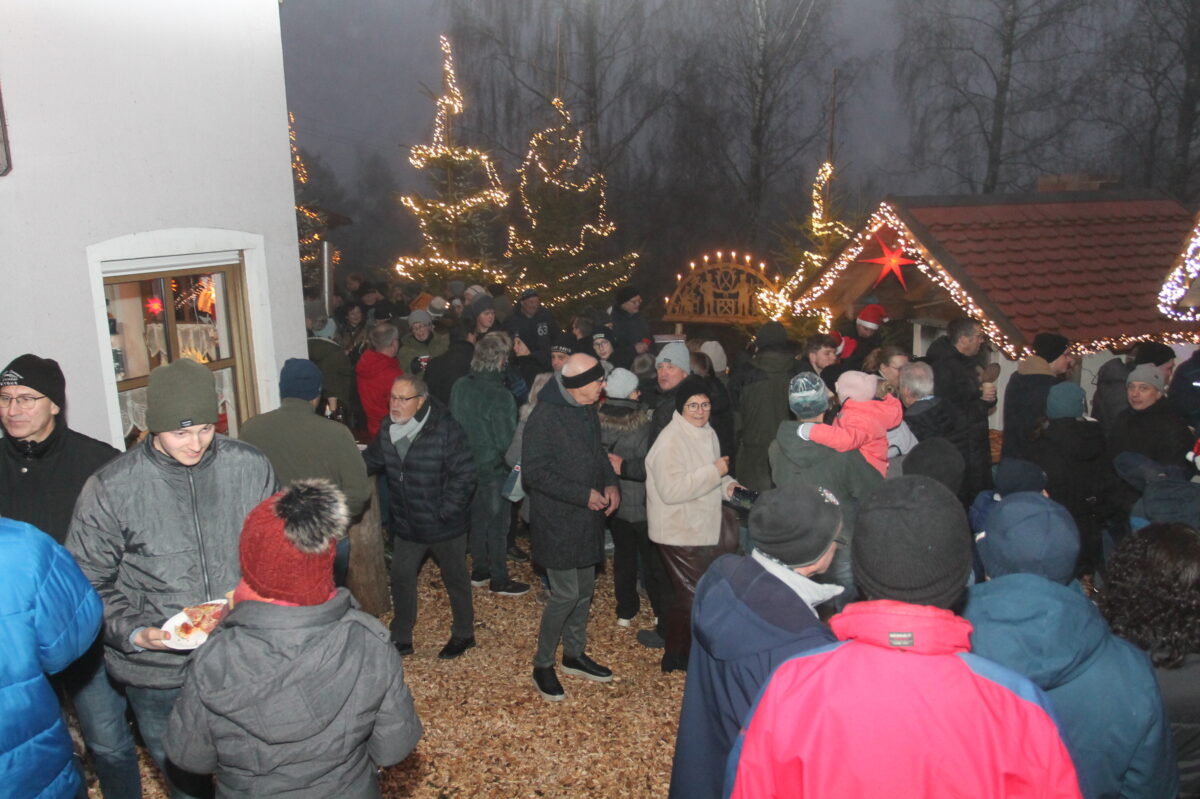 Im prächtig geschmückten Garten tummelten sich Groß und Klein. Eng ging’s vor allem nach dem Einbruch der Dunkelheit beim Durchkommen zu, und an den Ständen – darunter für Glühwein und Punsch oder für einen leckeren Flammkuchen, eine Pizza oder Bratwurstsemmel – war mitunter etwas „Schlangestehen“ angesagt.