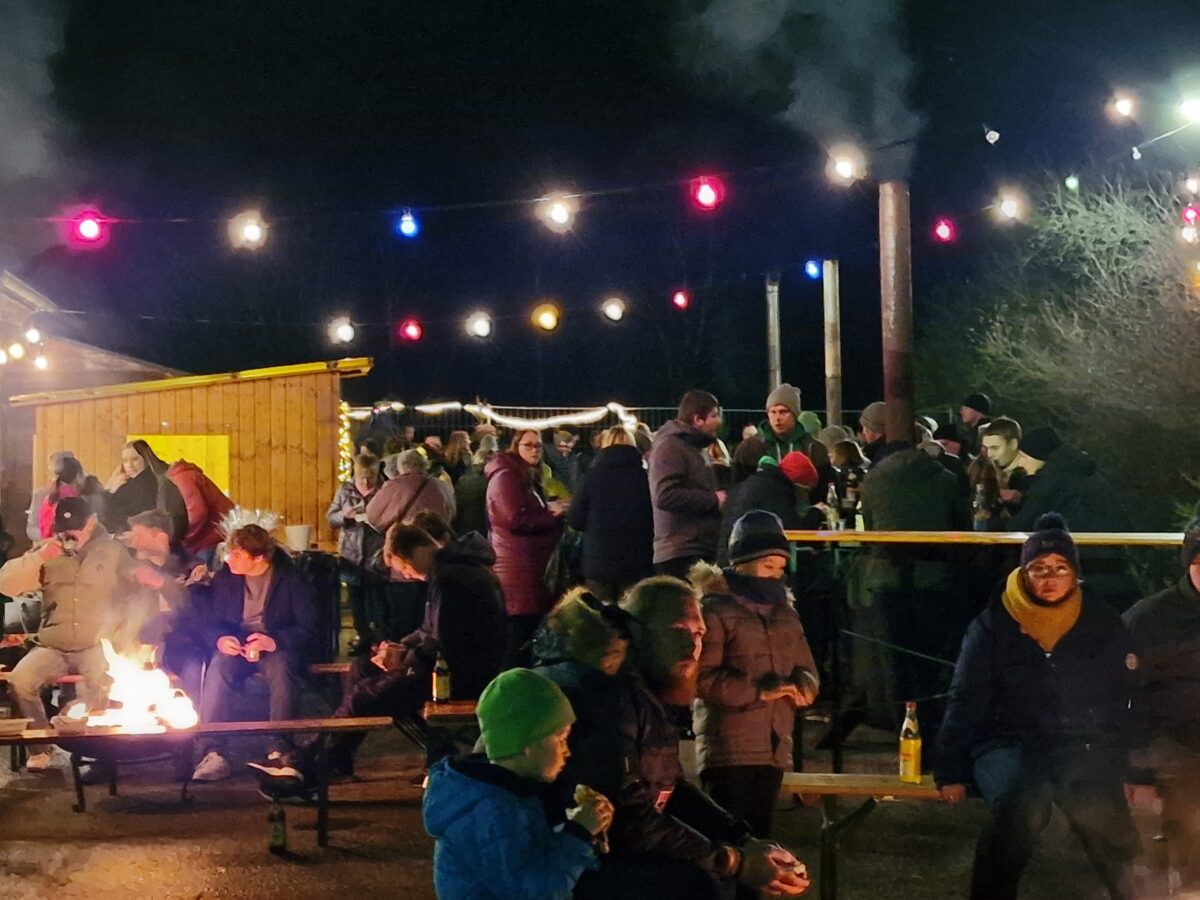 abhielt, lud der Verein dieses Mal alle Mitglieder und Sponsoren zu einer gemeinsamen Jahresabschlussfeier ein. Ab dem späten Samstagnachmittag konnten die circa 250 Besucher an Feuerstellen und Heizöfen rund um das weihnachtlich geschmückte Sportheim den Glühwein und Punsch genießen. Kulinarisch wurden die Gäste sowohl mit Grill- und Pastaspezialitäten, als auch mit süßem Gebäck und warmen Waffeln verwöhnt.