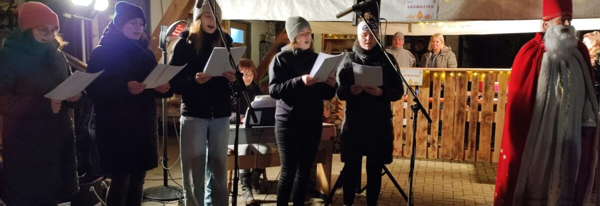 Um sich in der kühlen Abendluft warmzuhalten, standen Feuertonnen zur Verfügung, an denen sich die Gäste mit Speisen und Getränken versorgen konnten. St. Nikolaus hatte seinen Platz auf der Terrasse des Haupthauses gefunden, wo er Süßigkeiten an die Kinder verteilte und ihre Wunschzettel für das anstehende Weihnachtsfest entgegennahm. Nach den musikalischen Darbietungen blieben die Besucher noch lange zusammen, genossen die Wärme der Feuer und nahmen neben adventlich gestalteten Handwerksstücken auch eine gute Portion vorweihnachtlichen Frohsinn mit nach Hause.