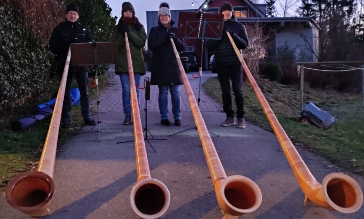 Die Veranstaltung wurde durch die musikalische Unterstützung von drei zusätzlichen Gruppen bereichert. Den Anfang machten die Schellenberger Alphornbläser mit Maria und Bernhard Träger, die den Abend mit dem “Klang der Berge” eröffneten. Auch der MGV trug unter der Leitung von Herbert Kraus mit dem Lied “Advent is a Leucht´n” zur adventlichen Stimmung bei. Von der Terrasse grüßte die Bläsergruppe “Verblecht” mit den Stücken “Tochter Zion” und “Wir sagen Euch an den lieben Advent”. Die jungen Damen von “G´spuit und g´sunga”, unter der Leitung von Barbara Birkner, präsentierten professionell “Happy Xmas (War is over)” von John Lennon und den “Frosty Snowman”. Die Besucher erlebten einen Wechsel von weihnachtlichen musikalischen Darbietungen, die die vorweihnachtliche Stimmung perfekt einfingen.