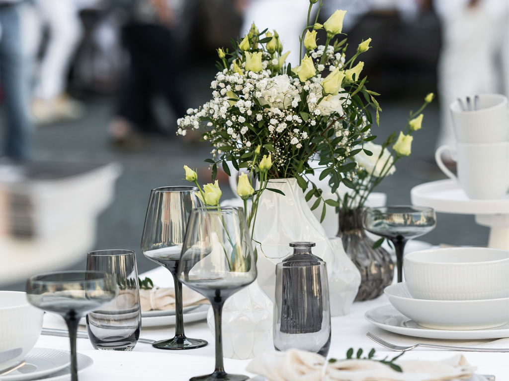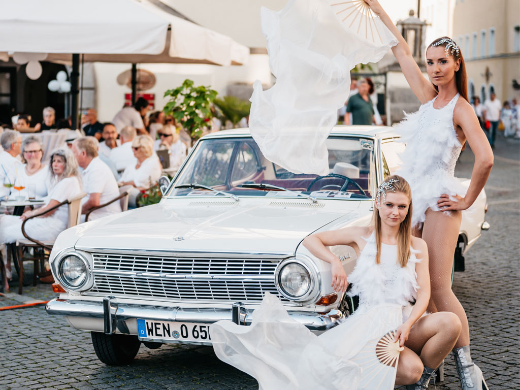 Bei Lounge-Musik und verschiedenen Drinks können die Besucher den Sommerabend an einer großen weißen Cocktailbar hinter dem Alten Rathaus genießen. Zudem lässt ein elegantes Rahmenprogramm mit zauberhaften „Walking Acts“ der Tanzschule NDancing diesen Abend zu einem besonderen Erlebnis werden. Vor Ort verwöhnen die Gastronomie rund um das Alte Rathaus sowie verschiedene Stände mit speziellen Kreationen. Aber auch das eigene Menü kann mitgebracht und an festlich dekorierten Tischen genossen werden.