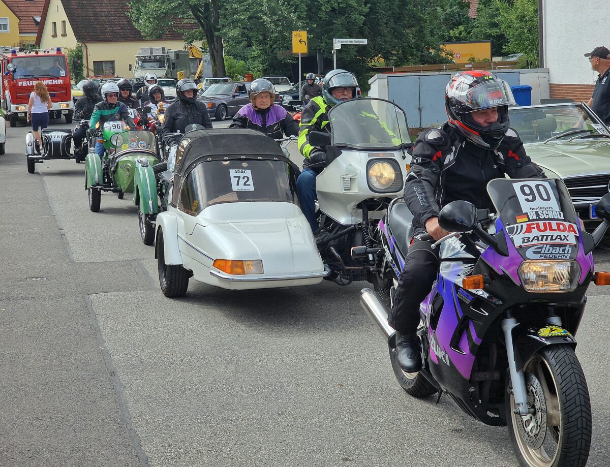 Die Startgebühr sind 20 Euro, inklusive aller Erfrischungen und Erinnerungsgeschenken. Nach der Fahrerbesprechung heulen die Motoren auf: Punkt 10 Uhr geht es los. Oberbürgermeister Jens Meyer schwenkt die Starterflagge. Der Tross setzt sich in Bewegung, zunächst Richtung Vohenstrauß. „Ich bin jedes Jahr dabei – das ist keine Ausfahrt, das ist ein Erlebnis!“, sagte Buwi Voit, der sich angemeldet hat. Beim Autohaus Grieb sorgt ein Zwischenstopp für Abkühlung und jede Menge neugieriger Blicke. Über Waldthurn geht es dann zurück nach Frauenricht.