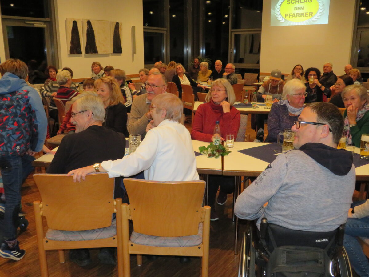 Der Pfarrfamilienabend war gut besucht: Nach der Abendmesse am Samstag hatte der Pfarrgemeinderat in den Pfarrsaal eingeladen. Viele Angehörige der Gemeinde waren gekommen, um in geselliger und ungezwungener Runde ein paar schöne Stunden zu verbringen und das gemeinsame Gespräch zu pflegen.
