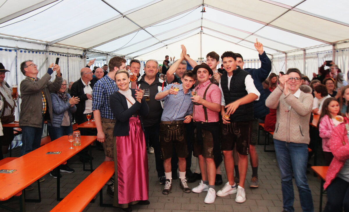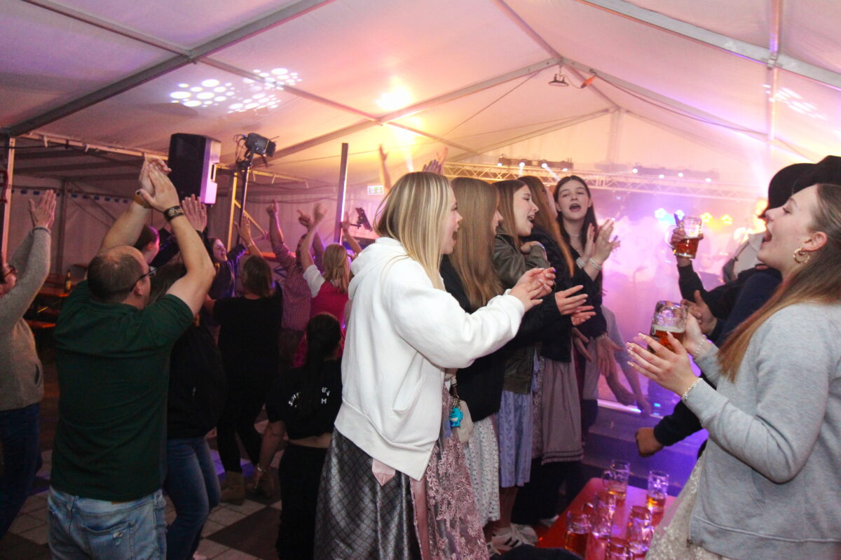 Die Bläser leiteten gekonnt mit weltlichen Klängen zu der Popmusik der Formation „Freistaat Live“ über. Ob Pop, Rock, Schlager, die Musiker sind inzwischen eine Stammbesetzung für Events in der Ortschaft und brachten ihr gemischtes Publikum auf die Bänke und Tische, steigerten mit dem gezielten Bierzeltrepertoire zunehmend die Feierlaune und das Mitmachen mit Tanz und Begeisterung.