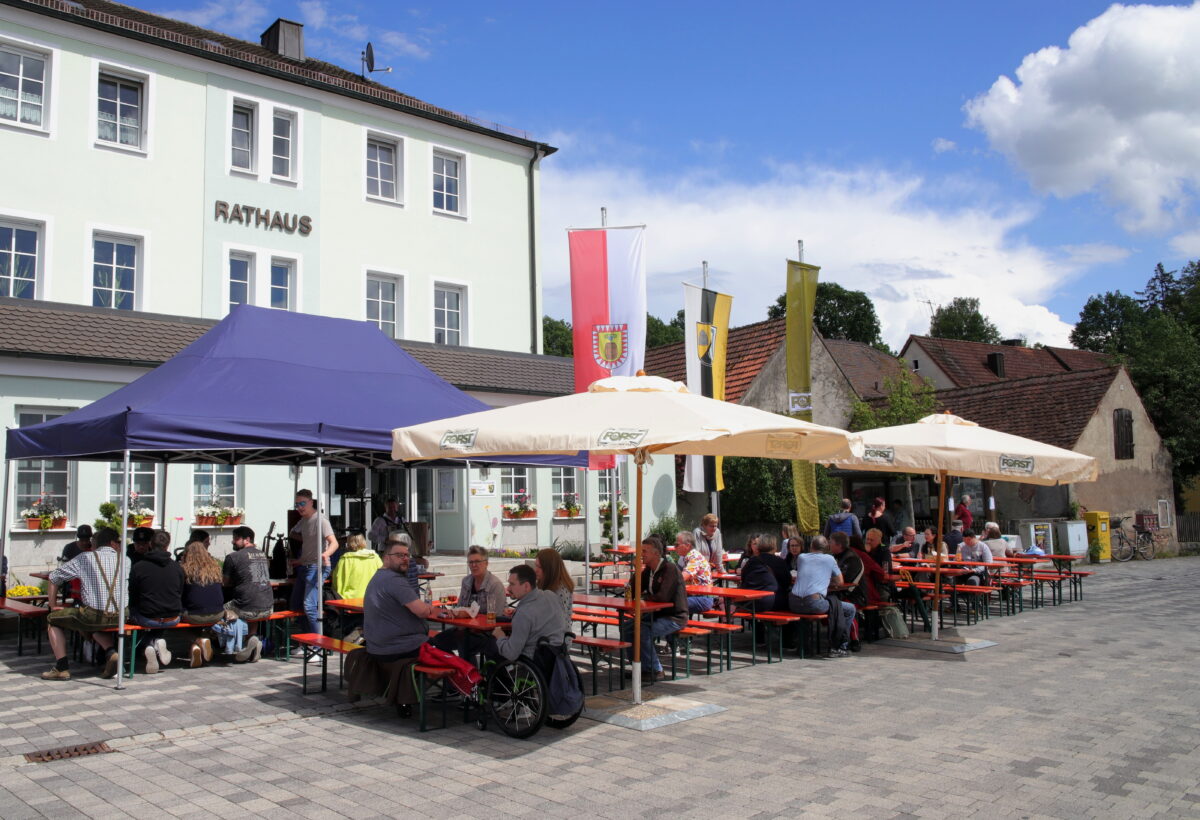 Und es war tatsächlich beeindruckend, wie flexibel die Etzenrichter und auswärtigen Gäste am Nachmittag des Pfingstsonntag mit dem Wetterwechsel umgingen. „Wir sind schon viermal umgezogen, ins Bierzelt und zurück ins Freie“, berichtete eine Radschinerin. Die „Harten“ hielten auch bei den Regenschauern unter den großen Sonnenschirmen im Biergarten auf dem zentralen Festplatz aus.