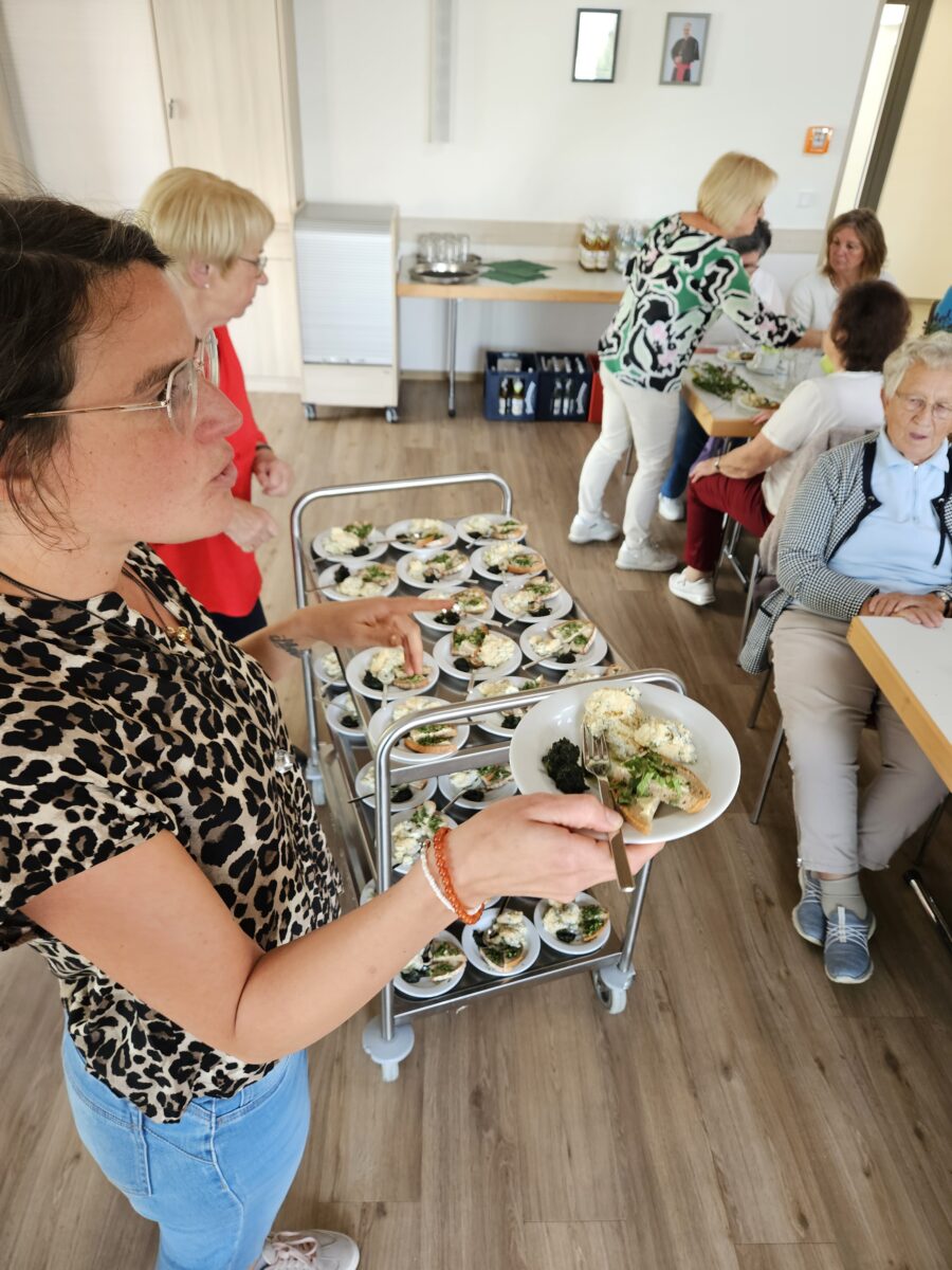 Das Generation 60+-Team unterstützte den theoretischen Teil mit praktischen Kostproben. Brennessel-Zitronen-Mus, Bauernbrot mit Gierschtopping und ein erfrischendes Zitronen-Limetten-Tiramisu begeisterten die Gäste. Die ausgelegten Rezepte und das Infomaterial fanden großen Anklang. Zum Abschluss dankte Kuni Hanauer im Namen aller Teilnehmenden Barbara Nickl mit einem herzlichen Applaus. Bei Kaffee, Tee und einem reichhaltigen Kuchenbuffet beantwortete die Referentin anschließend noch zahlreiche Fragen. Ein besonderer Dank ging auch an die Organisatoren der Veranstaltung, die sowohl im Saal als auch im Hintergrund für einen reibungslosen Ablauf sorgten.