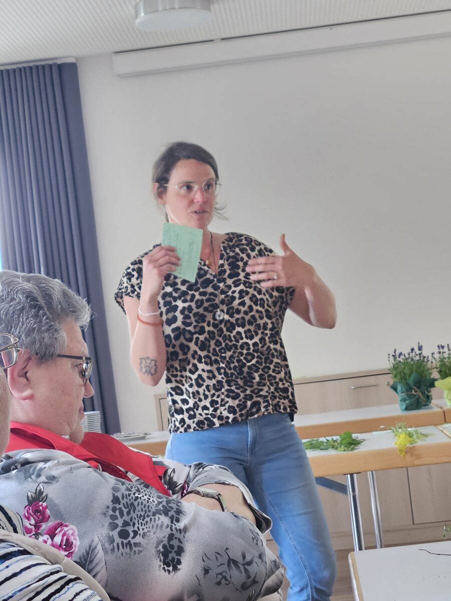 “Sie liebt die Natur, die Erde und die Menschen und die größte Verbindung zu Gott spürt und erlebt sie in der Natur”, so begann der Vortrag. Barbara Nickl demonstrierte eindrucksvoll die Vielfalt einheimischer Kräuter. Ihre lebendige und fachkundige Art zog die Zuhörer in den Bann. Besonders die Sommersonnwend-Kräuter standen im Mittelpunkt. Zur Verwendung dieser Kräuter in der Küche gab Nickl zahlreiche Tipps. Von Johanniskraut bis Brennessel, von Giersch bis Löwenzahn – die Bandbreite der vorgestellten Pflanzen war enorm. Die Zuhörer lernten, wie diese “Wildkräuter” in Gerichten verwendet werden können.