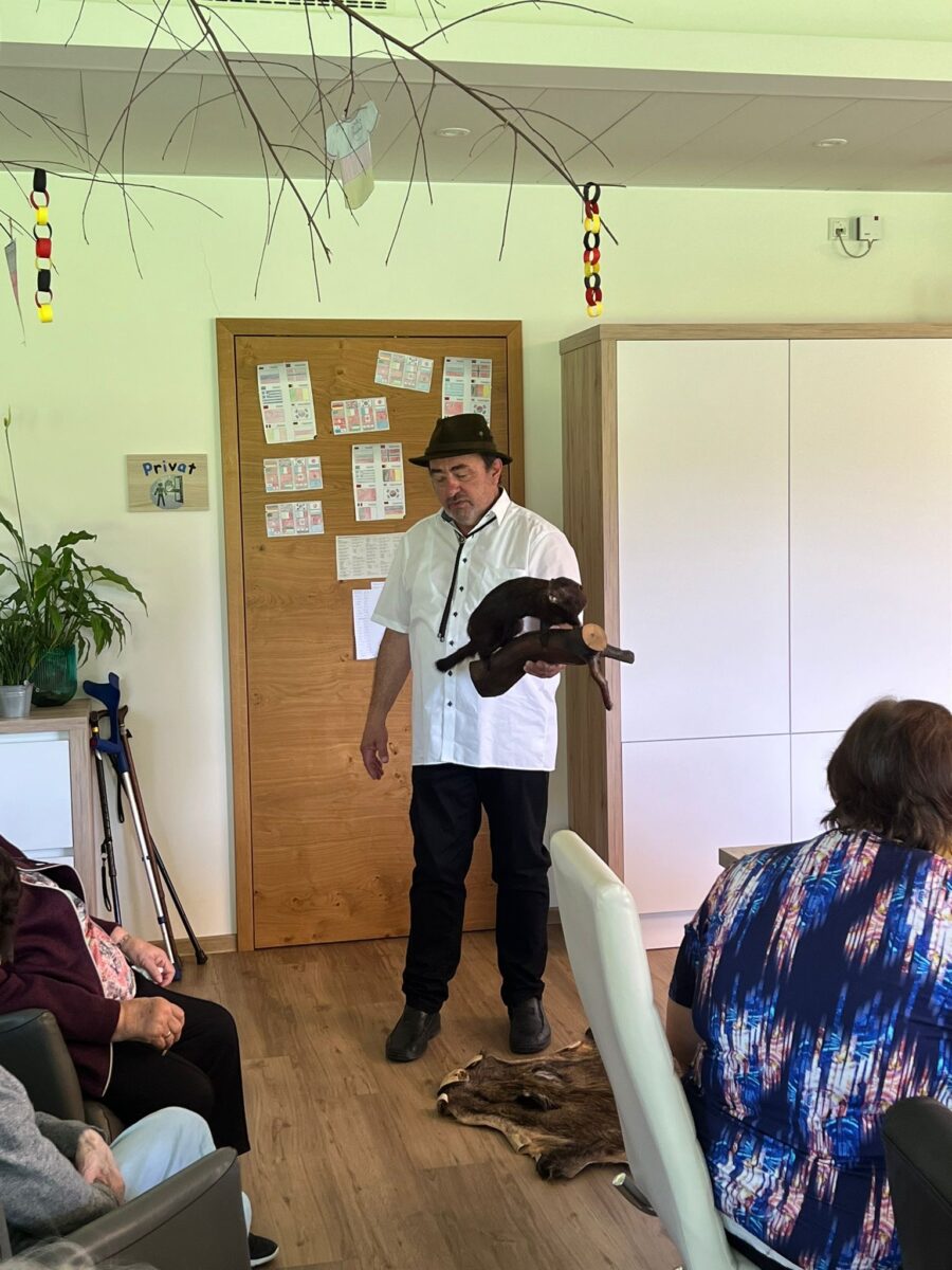 Die Leiterin der Tagespflege, Melanie Reber freute sich über den gelungenen Tag und überreichte den Gästen aus Windischeschenbach was anders als eine Flasche „Jägermeister“.