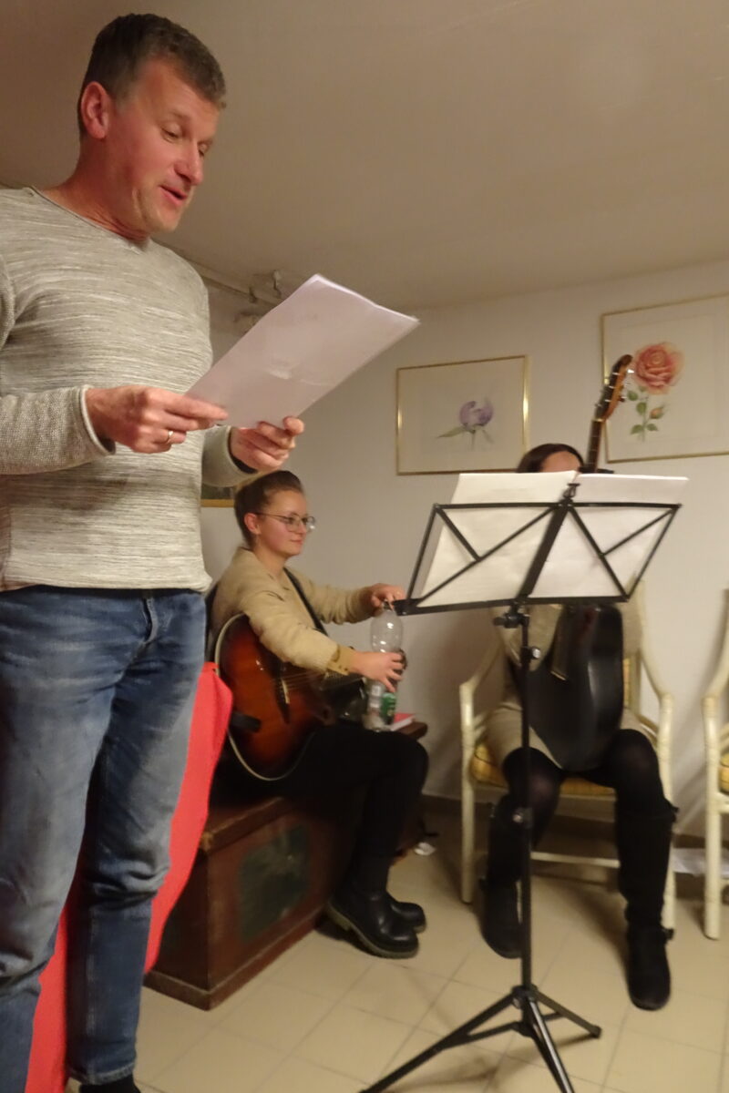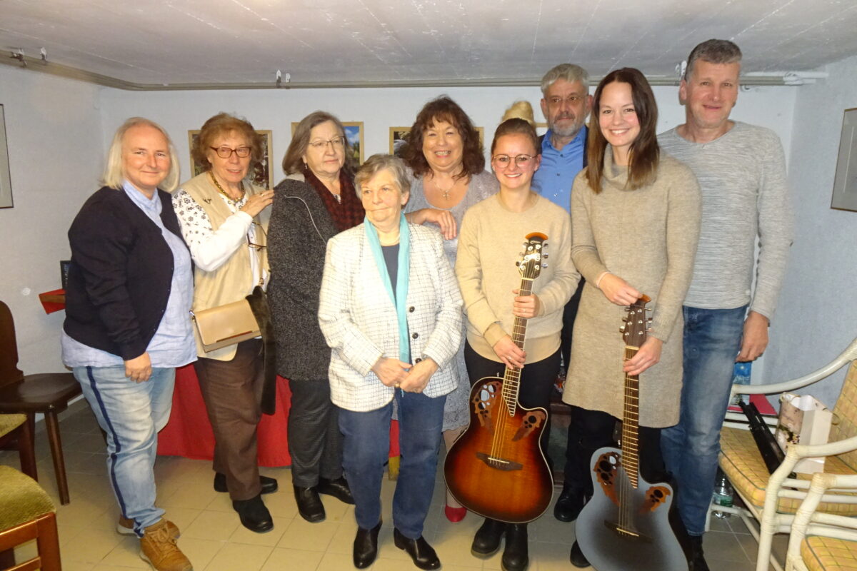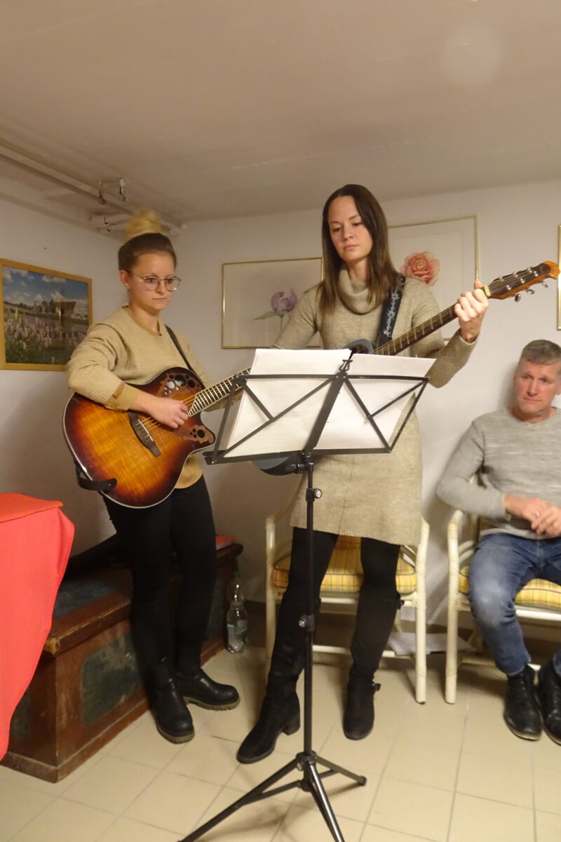 Angeregt hat dies Olga Luft aus Tirschenreuth. Mit Pop und Adventliedern begeisterte das Gesangsduo Marina und Magdalena die Anwesenden. Zu hören waren unter anderem Mistletoe and wine und weitere adventliche Lieder. Für den gesprochenen Part sorgte Wolfgang Göldner mit verschiedenen Liedtexten, wie From a Distance / Aus der Ferne von Better Midler, “Wenn man Freunde hat” und ein Text aus Griechenland, der vom Frieden spricht.