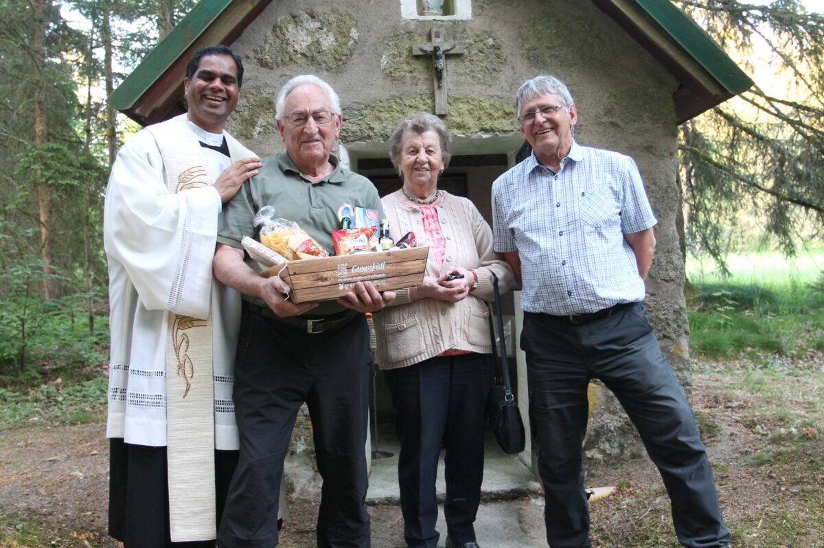 Zehn Jahre lang haben Hildegard und Ludwig Frauenreuther für die Pflege der Binsenstock-Kapelle einschließlich des Umgriffs verantwortlich gezeichnet. „Jetzt ist es gut“, sagten die fast 84-Jährigen am Ende der vom Oberpfälzer Waldverein organisierten letzten Maiandacht an der Gebetsstätte im Wald.