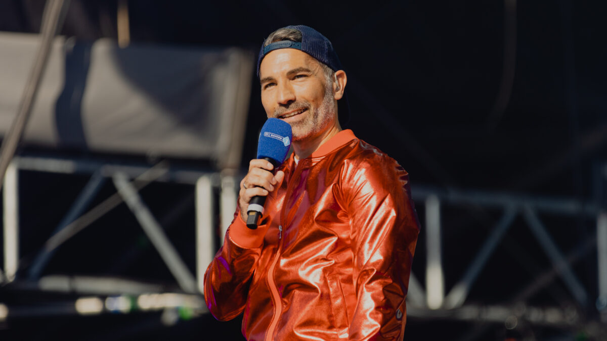 Genauso wie am Vortag war auch die Stimmung am Samstag, als BAYERN 1 Morgenmoderator Marcus Fahn die Festival-Fans bei strahlendem Sonnenschein zum BAYERN 1 Summer of Music Festival begrüßte. Stilecht im Look des Jahrzehnts von Walkman und Zauberwürfel beeindruckte er besonders mit seinem frisch erlernten Moonwalk.