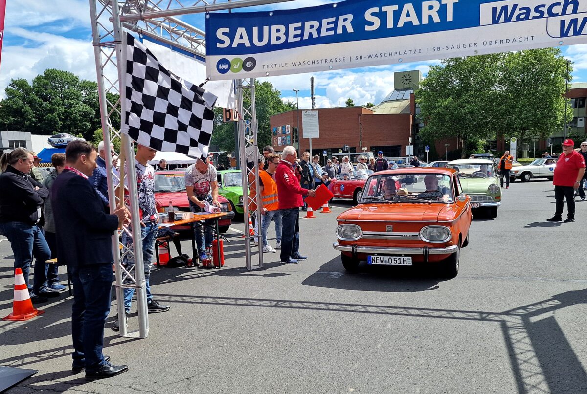 Kurz vor dem Start der 70 Kilometer langen Ausfahrt erhob sich Oberbürgermeister Jens Meyer zur Ansprache. „Für Menschen mit Benzin im Blut ist dieser Tag ein Fest“, sagte er und hob besonders hervor, wie viele Erinnerungen die historischen Fahrzeuge wachriefen. „Da sehe ich meine Kindheit an mir vorbeifahren.“