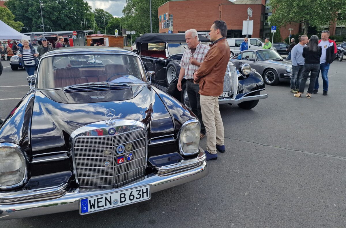 Mit frischem Elan ging es über Flossenbürg und Floß zurück nach Weiden. Dort reihten sich die Fahrzeuge wieder auf dem Großparkplatz ein, wo die zweite Halbzeit des Tages eingeläutet wurde: „Benzingespräche“ an jeder Ecke, leuchtende Kinderaugen an der Auto-Hüpfburg und fachkundige Diskussionen über Motorhauben hinweg. „So etwas erlebt man nur einmal im Jahr und heute gleich im XXL-Format“, schwärmte ein Besucher aus Thüringen.