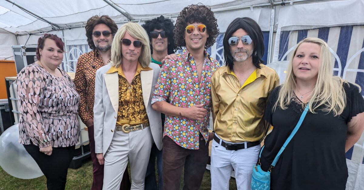 Was war der Grund dafür? Die Golden Glitter Band mit Leadsänger und Lokalmatador Markus Engelstädter waren vor Ort und entführten Jung und Alt zurück in die Zeit der guten alten 1970iger Jahre. Deutsche Schlager aus diesem Jahrzehnt ist das Repertoire der fünfköpfigen Partyband die in Zessau ihren Start hatten und eindrucksvoll wieder nach Hause zurückgekehrt sind.