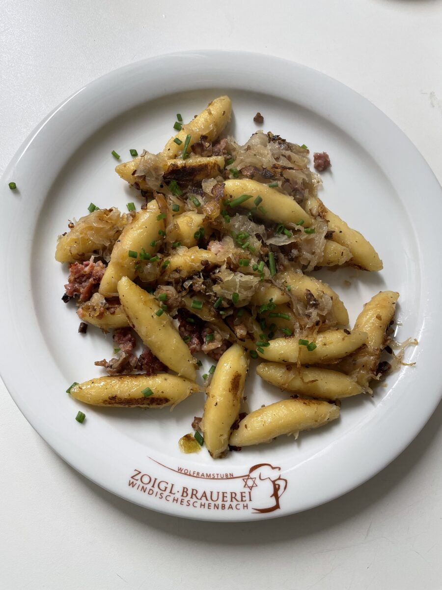 Was die Wolframstubn besonders macht, ist der direkte Weg des Zoigls: gebraut im eigenen Haus, ausgeschenkt in der eigenen Stube. An den Zoiglwochenenden ergänzt selbst gebackenes Holzofenbrot aus der hauseigenen Biobäckerei das Angebot – ein Zusammenspiel, das handwerklicher kaum sein könnte.