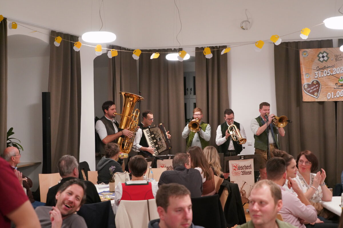 Ihren besonderen Teil zur besten Stimmung trug die „Rüscherl Muse“ mit Florian Forster (Pleystein), Simon Schmidt (Ursensollen), Martin Schmid (Tiefenbach), Michael Schneider (Hoffeld bei Tiefenbach) und Pascal Führnrohr aus Pleystein bei. Landjugend – Chef Simon Schwab aus Spielberg war von der vorzüglichen Stimmung im neurenovierten, altehrwürdigen Lobkowitzschloss begeistert. „Die neugewählte Vorstandschaft der KLJB, die bekanntlich bei uns Runde heißt, hat hier alles im Griff“, meinte Schwab.
